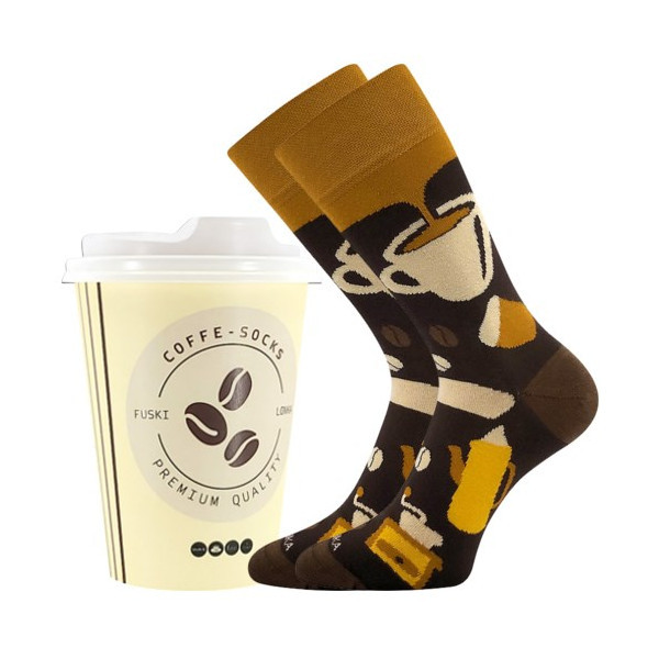 dámské-pánské ponožky s motivem KÁVA, jemný nestahujícé pique lem, pletené z česané bavlny, řetízkovaná špice nikde netlačí a zajišťuje pohodlí a komfort při nošení, 1 pár balený v originálním nápojovém kelímku