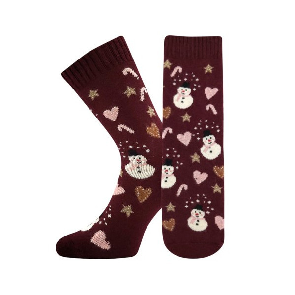 Silný úplet je díky podílu vlny hřejivý a maximálně pohodlný. Ponožky jsou díky celofroté uvnitř velmi měkké, díky němu budete mít nohy jako v bavlnce. Darované ponožky s roztomilými vánočními motivy vykouzlí úsměvy nejen Vám, ale i obdarované kamarádce, mamince či přítelkyni nebo manželce. Hřejivé ponožky EMILY pro tu správnou vánoční atmosféru pro každou ženu či dívku.